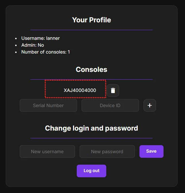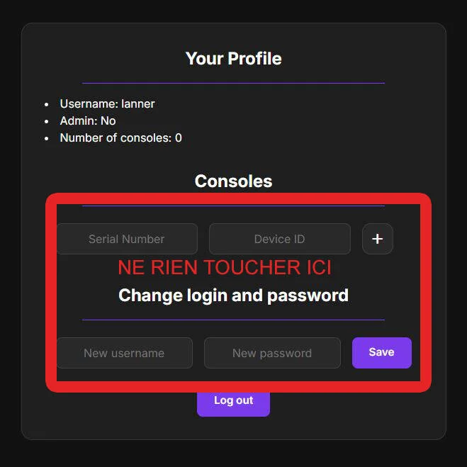 url à renseigner pour relier votre console au site par le numéro de série